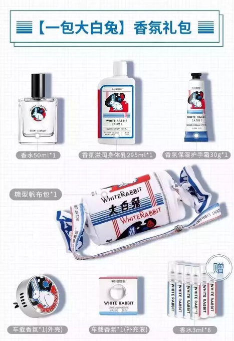而为了让大白兔狂热爱好者实现一键购买,大白兔和气味图书馆还推出“甜蜜大礼包”。