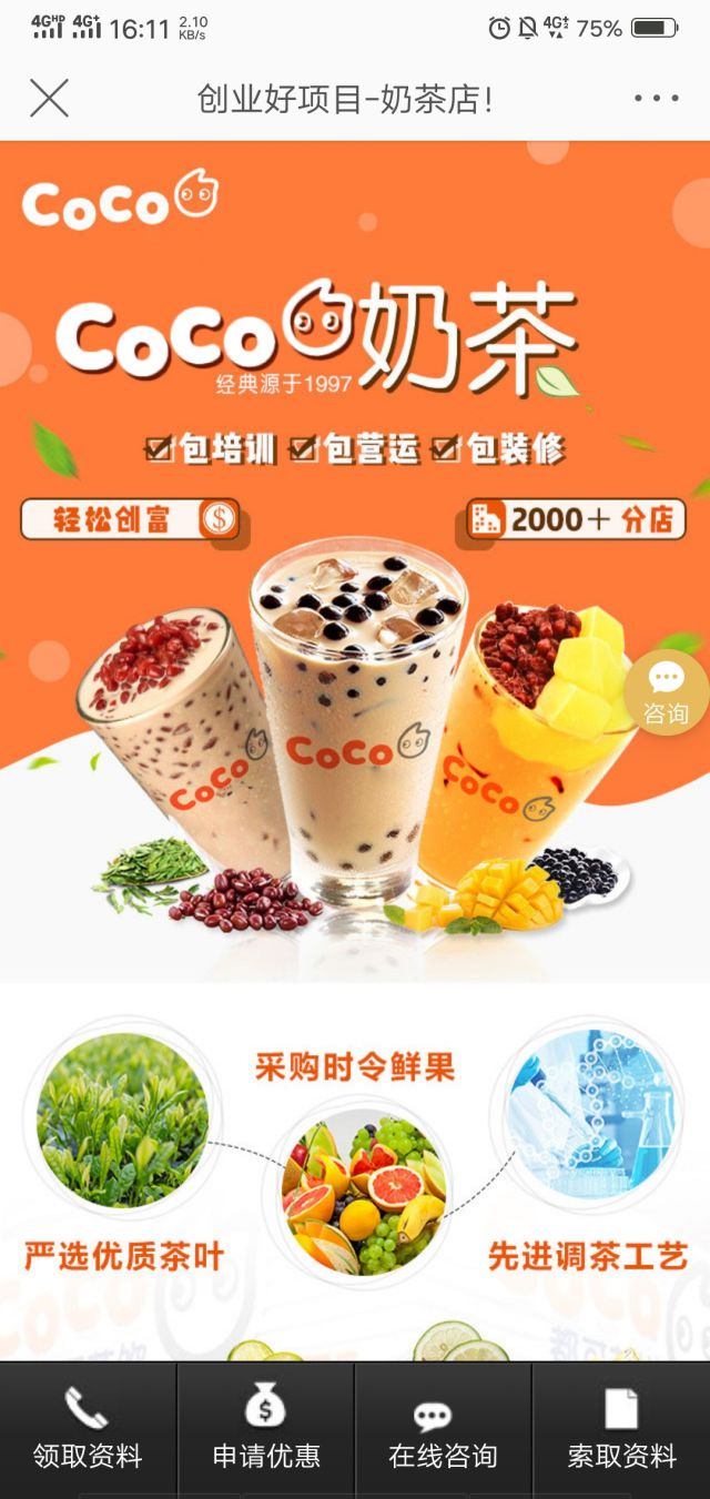 进入广告的落地页,一般招商加盟的广告落地页的内容都是产品的介绍、用户加盟考虑的内容、加盟店面、以及用户加盟后提供的一些服务等,各种招商加盟用户考虑的方式落地页都要考虑到并且给出方案和服务,可以说招商加盟的落地页就是为用户解决问题的。
