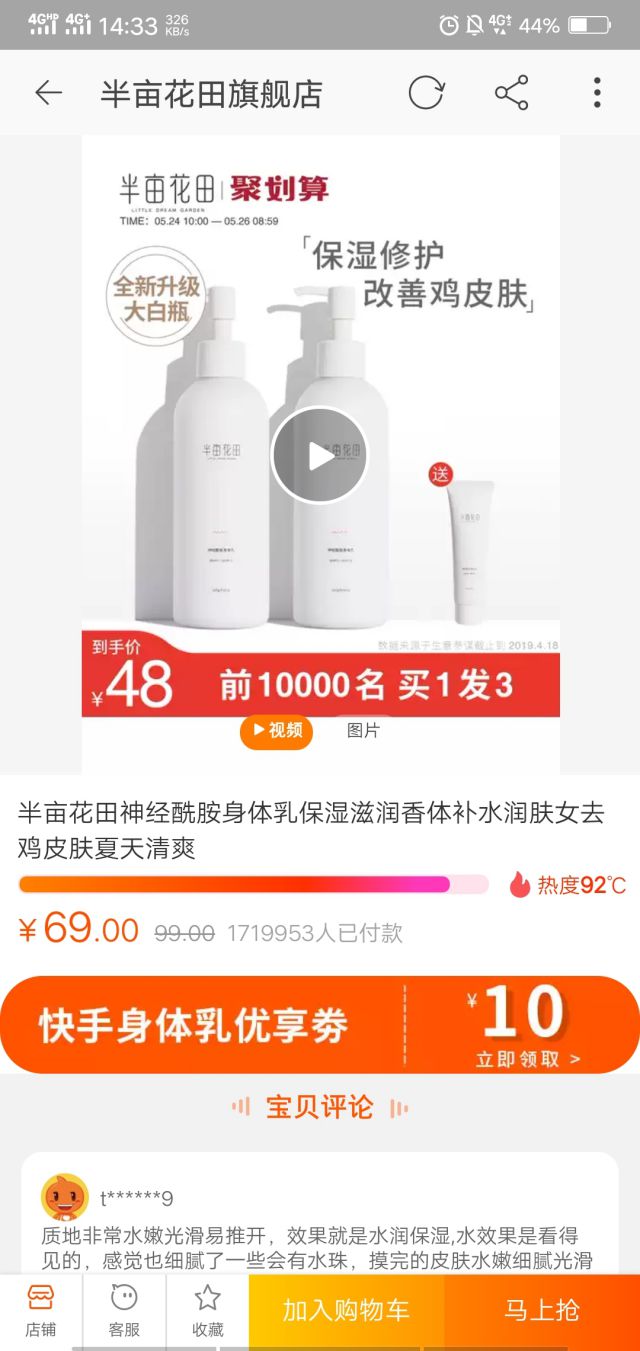 点击视频中的“立即购买”按钮,就可以跳转到广告主的落地页了,落地页是半亩花田的淘宝详情页,目前正在聚划算,快手进来页面用户的还有10元优惠券,并且前一百名买一发三,这么大的优惠力度,相信用户一定会心动。 如此丰厚的优惠,不仅吸引精准用户的购买,更吸引潜在用户的转化,直接提高产品的销量。 一般电商行业的落地页都是跳转到淘宝、京东等各电商平台的单品详情页或者是店铺首页,直接为广告主引流到店铺,增加广告的转化,而且直接跳转到广告主的电商店铺,也能减少用户的跳出率,投放广告的同时也实现了产品SOSO问答营销的曝光,两全其美。 即将到来的儿童节,各大电商的广告主是时候提前几天将广告做起来了,尤其是童装行业、玩具行业、零食行业......的广告主,趁着这一波节日,做一波借势营销推广品牌或者产品吧!