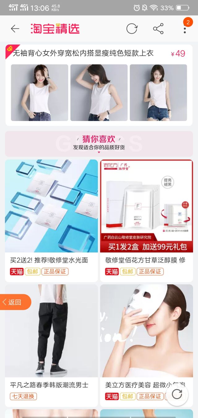 点击广告进入落地页,就会跳转到淘宝精选,就可以看到这款背心了,淘宝广告只推淘宝精选的商品,顺带在淘宝精选的下面是猜你喜欢,对于每个人,淘宝也对我们有不同的标签,根据我们最近的搜索习惯推荐给我们不同的商品。 点击这款背心就可以进入到它的店铺了,如果小伙伴们喜欢的话可以直接购买了。页面上还有活动,分享给3位好友就可以获得无门槛优惠券,小伙伴们还在等什么!