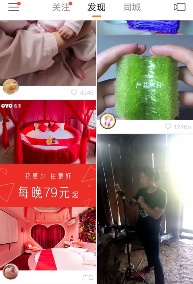 毕业季出去旅行不知道住哪?酒店费用贵?预算有限? 出去旅游可能我们经常会遇见这些的问题,这些问题也是我们出门旅游前要考虑的问题,尤其是酒店,都知道旅游的时候越靠近景点的地方酒店的价格就越贵,可以说旅行如果只是为了看风景的话,那主就点可要比正常旅行的那一种是信息流广告景点门票贵多了,如果旅行的预算有限又非常想出去旅行,那有该当如何呢?也可能我们出门不是为了旅行,而是有其他的事,但是不管去哪,在外住酒店是必不可少的。 酒店太贵不是没有办法解决的,OYO酒店投放快手广告,看完就知道怎么住就点省钱了。 广告外层: 广告外层使用酒店的内部房间装修的图片作为封面图,精装修的房间而且看上去空间也很大,重要的是每晚79元起农产品营销策划公司,79元对于住酒店来说可以说是非常便宜了,再加上高大上的封面图,非常容易引起用户的兴趣。