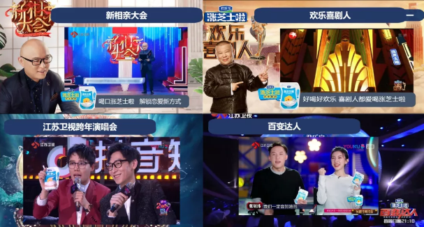 作为君乐宝”涨芝士啦”综艺营销中的重要合作伙伴,《百变达人》成了上半年最令人惊喜的综艺黑马,随着最终挑战赛《百达盛典》的结束,君乐宝上半年的综艺营销也划上了圆满的句号,迎来了口碑和销量的双丰收。他们是如何一步步占领消费者的心智,从而实现全营销渠道合一的传播效果?值得我们反思和复盘。 1.强势霸屏:十档热门综艺整合内容营销联合背书,助力产品脱颖而出 冠名《百变达人》并非“涨芝士啦”在综艺营销的初次试水,回顾君乐宝近半年来的一系列举措,就会发现这只是产品营销大棋中的一小步。 2019年,君乐宝与东方卫视、江苏卫视两大顶级卫视频道达成了战略合作,先后冠名、赞助了《欢乐喜剧人》《新相亲大会》《一站到底》《笑傲江湖》《百变达人》等十档顶级综艺节目。这些节目均收获了不俗的收视率和话题量,而君乐宝“涨芝士啦”也因此受到越来越多消费者的喜爱,产品销量较去年翻倍增长,牢牢占据芝士酸奶第一品牌。