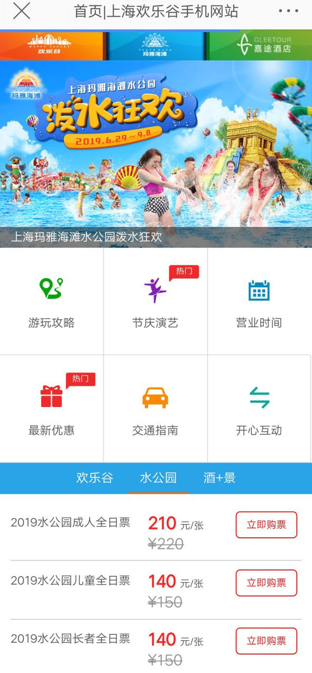 配图也是非常有吸大庆小程序引力的,看起来很嗨很好玩,如果小编有孩子小编就要马不停蹄的赶过去了。 落地页里,海滩、欢乐谷、酒店都已经准备好了,还有游玩攻略、交通、营业时间、优惠信息,用户关心的都有,这些信息都可以在落地页了解到,还可以在落地页直接买欢乐谷、水公园、酒店的票,在线下单方便快捷。