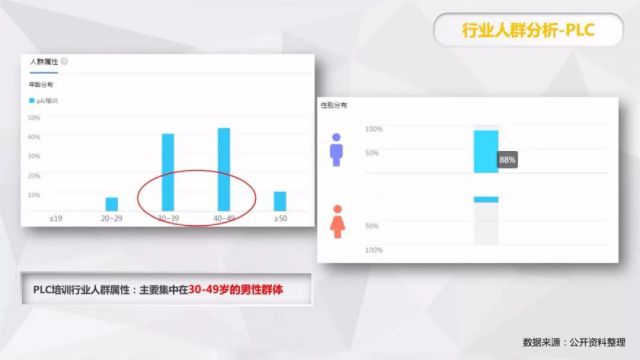 行业人群分析:PLC培训行业人群需求主要集中在:培训机构、培训班、多少钱、工资收入多少、入门学习等需求点,人群属性主要集中在30-49岁男性群体