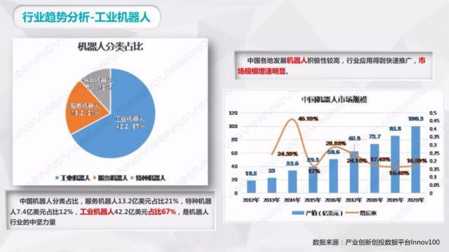 3、工业机器人 行业趋势分析:中国机器人分类占比,服务机器人13.宣传片制作哪里好2亿美元占比21% ,特种机器人7.4亿美元占比12% ,工业机器人42.2亿美元占比67% ,是机器人行业的中坚力量。中国各地发展机器人积极性较高,行业应用得到快速推广,市场规模增速明显。