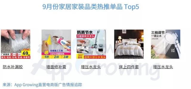 四、家居家装行业热销商品 基于App Growing直营电商版追踪到的数据,家居家装行业9月份热推单品TOP5 如下。