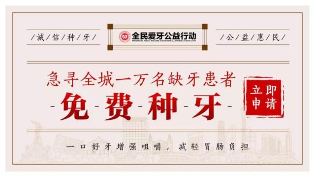 标题文案:【地域】缺牙总动员:缺牙者可免费申请种植牙!