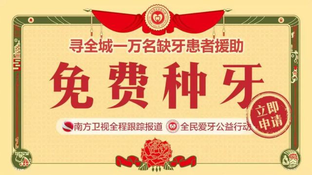 标题文案:广州种牙公益活动:即日起,缺牙患者均可报名申请免费种植牙!