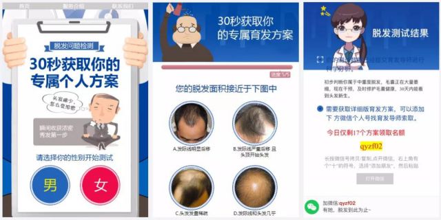 创意亮点:层出不穷的测试题是用户们的最爱,30秒测试,低成本又快捷,用户参与度高;在答题过程中进一步加深用户对自己症状的认识,最终以测试结果引导用户获取解决方案,行动欲望自然更高。 No.3 客户案例