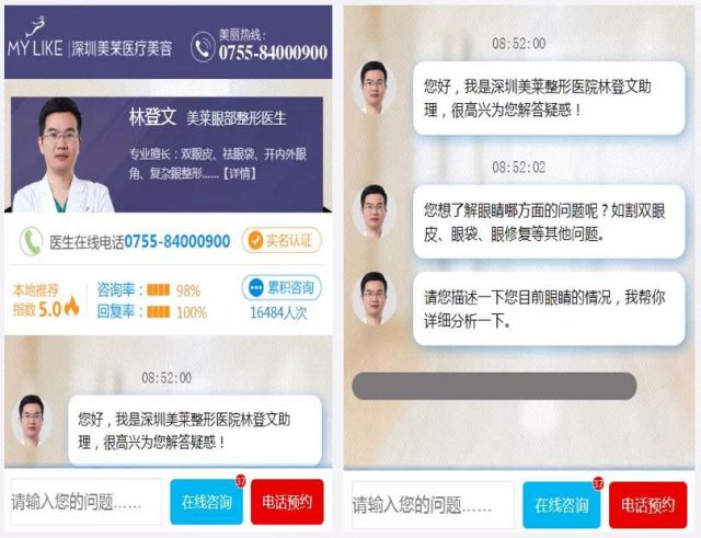 创意亮点:详尽的客户案例信息大大提升真实性,增强用户信任感,弱化症状图,强化术后效果图,不仅在画面美感上有很大提升,也能减小被拒的风险哦。 No.4 咨询类