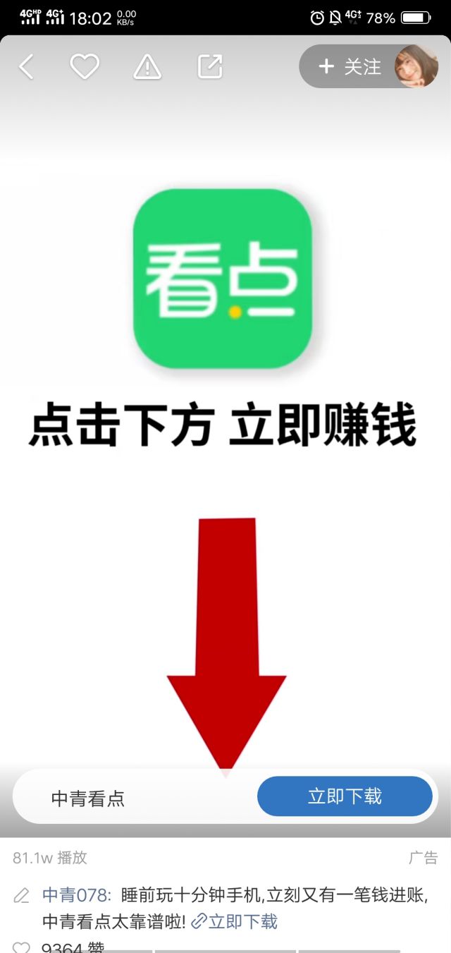 “才开始种地就赚了20块钱”,封面配上支付宝提现的画面吸引用户,点击进去视频,视频自动播放,视频内容主要是介绍中青看点是如何使用如何赚钱的。视频中设有“立即下载”按钮,用户可以点击按钮直接下载,非常方便。 推广APP类的广告的形式差不多就是这样,广告的成败一般取决于广告视频的创意,广告样式虽相同,但是一个好的创意可以带给广告主出乎意料的如何应对酒店公关危机效果,一个好的广告创意可以让用户耳目一新。