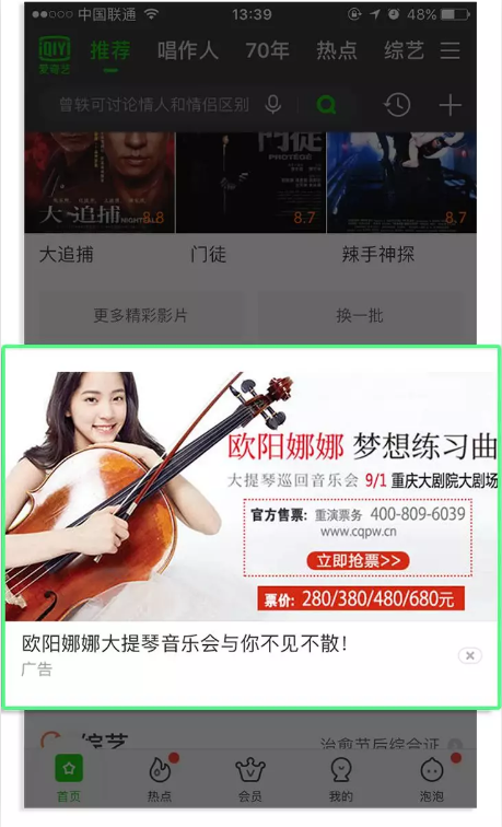 本命、事业粉、亲妈粉、女友粉、战斗粉、CP粉、白嫖粉、团粉、毒唯、路人,你是哪一种?如果以上这些词你看不懂,那说明你与当下火爆的粉丝经济基本无缘了,更可怕的是,你离年轻人经济也越来越远了。 这并不是危言耸听,时下有一句话叫做“读懂年轻人,从饭圈开始”。现如今的饭圈,早已成为年轻人的聚集地。 正所谓有广告营销推广人的地方就有江湖,因为立场不同,饭圈中的battle无处不在,反黑和控评更是让饭圈的粉丝们鸡血十足。想要打破饭圈营销次元壁,得到粉丝们的共同认可,难上加难。 然而,重庆迅博票务(简称“重演票务”)借势明星影响力,通过对“爱豆粉”和“路人粉”的精确划分,让广告内容深度触达各圈层,实现高效营销。 一言以蔽之,就是“聚本命,拉路人”。 “本命”是一个日源词,原意是“赛马、赛车等比赛项目中最有可能获得优胜者”。后来扩散到粉丝文化中,便引申为对某个偶像、作品、人物、CP等的极致的喜爱。在粉丝心目中,“本命”是神圣而不可侵犯的崇拜对象。 “路人”则是指对某一明星或文化现象不了解、但随时有可能转化成粉丝的人。 明白了这两者的含义,“聚本命,拉路人”的招式就清晰多了。但是“重演票务”在实际营销中又是如何操作的呢?举两个例子,大家就明白了。 欧阳娜娜“梦想练习曲”大提琴音乐会 欧阳娜娜作为音乐才女,加上身世惊人,被称为出生在终点线的人。年纪轻轻的她,在多部知名综艺节目中都有精彩表现。 虽然欧阳娜娜拥有一大批95后“本命”粉丝,但欧阳娜娜大提琴演奏会在重庆召开时,知道的人却不多,快速聚集“本命”就成为了当务之急。 说起“本命”粉丝最多的地方,首先想到的肯定是爱奇艺,在爱奇艺效果营销的加持下,“重演票务”即刻变身“本命召唤师”,通过广告掀起一轮抢票热潮。