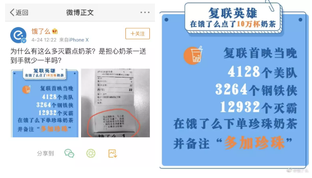 4.@饿了么 “为什么有这么多灭霸点奶茶?”