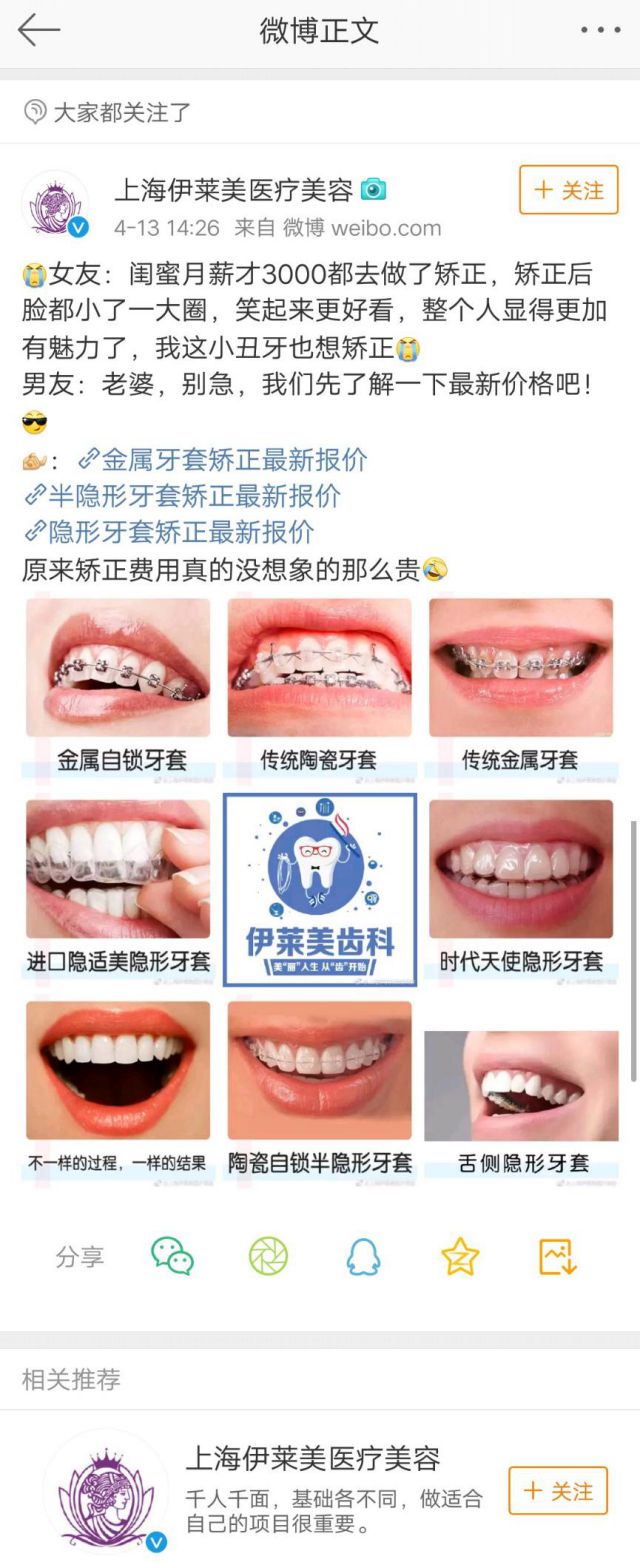 小提示:您应该对本页介绍的“上海伊莱美投放的微博粉丝通牙齿矫正案例”相关内容感兴趣,若您有相关需求欢迎拨打我们的服务热线或留言咨询,我们尽快与您联系沟通上海伊莱美投放的微博粉丝通牙齿矫正案例的相关事宜。