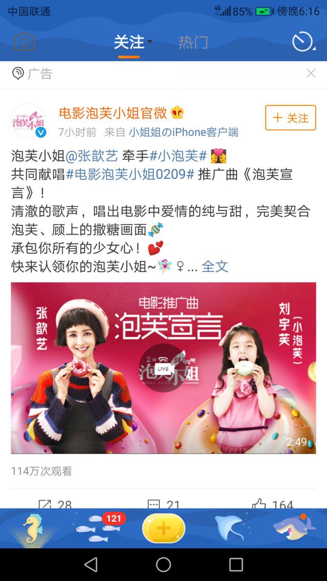 广告主的外层文案是这样滴! 广告主借助明星效应和本身的品牌内容,来做广告创意。 app危机公关处理 计划在这里,广告主巧借张歆艺的名声也为自己的品牌做出了宣传,并且广告文案内容也很有意思,通过“张歆艺牵手小泡芙共同献唱#电影泡芙小姐0209#推广曲《泡芙宣言》”来让用户对于这里的广告内容有更多的关注! 广告视频就是张歆艺和小泡芙共同演绎的电影推广曲。 细心的小可爱一定会发现,广告主这里的广告投放,效果都不会太差,并且广告主的这波广告投放,是推广多个内容: 1.电影泡芙小姐官微 2.电影《泡芙小姐》 3.电影推广曲《泡芙宣言》 而这些内容都有和明星“张歆艺”有联系,所以广告主们的广告投放内容也自然会让喜欢张歆艺的粉丝有所互动。对于明星而言,出现在微博粉丝通广告中,一方面是在为广告做宣传,其实也能够为自己的知名度做准备,可以让沉静的粉丝重新活跃,或是找到新粉丝! 这里的广告投放实际上,也是给了我们一个影视宣传的新方向! 如果我们在做广告投放时,也可以在,微博,爱奇艺上注册相应账号,并定时发布电影相关花絮等等。通过做提前的内容预热,也可以让影视内容的名称提前出现在大众面前,也可以提前引发用户的关注,并让影视剧在真正的上线之前,就有一批活动用户的关注!