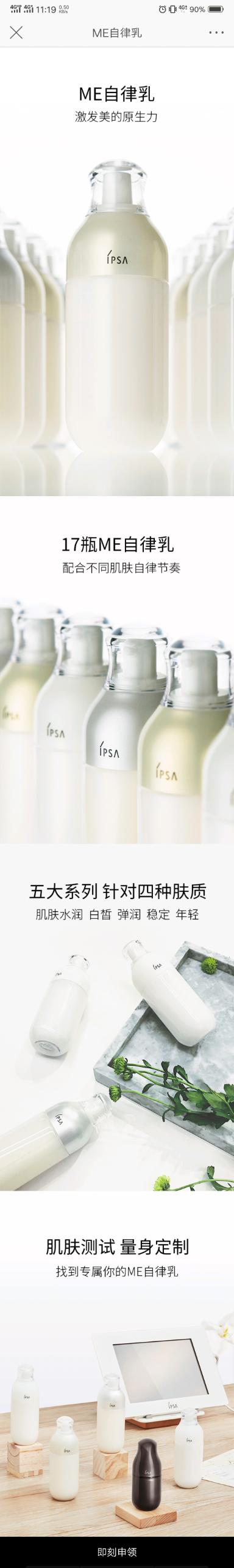 点击广告之后,是ME自律乳的产品展示,多维度展示和介绍,吸引用户跳转到下一个页面。