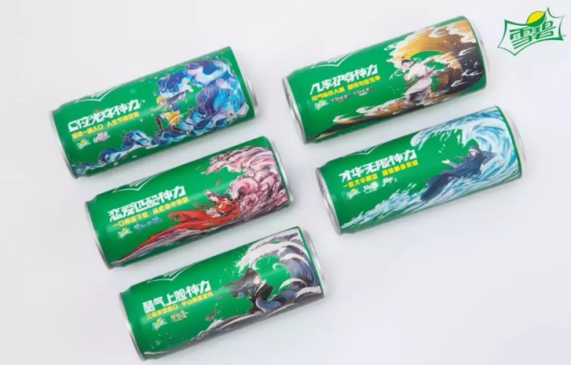 又或者是在瓶身营销上,也来一次跨界。 在去年八月份,雪碧一次性联合了五大游戏,大话西游、劲舞团、楚留香、倩女幽魂和天下一同跨界合作,共同打造了酷爽限量罐,瞬间吸引了年轻人的注意,彻底燃爆了整个夏天。 雪碧针对每一款游戏的特点和人物特色,还定制了不同的瓶身图案,在雪碧绿色主色调的基础上,引用经典的游戏角色,以此吸引游戏玩家和二次元受众,以包装视觉的冲击性,来刺激玩家粉丝们的收藏欲望。