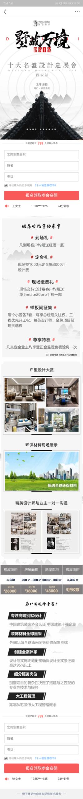 这一页的跟内容主要是收集目标客户资料,用户填写联系方式,到现场参会,还有好礼相赠!比如到场小程序怎么开发会有到场礼、定金礼、现场缴费礼,都是吸引目标受众的关注点! 并且在广告落地页里,还有介绍用户参与活动以后,能够了解到的内容,比如户型设计的案例欣赏,也会有环保材料的展示内容,并且广告主参会以后还可以和专业的装修设计师进行一对一沟通,并根据自己的房屋特点,设计专业的装修方案等等。 一个专业的广告落地页,肯定还是要给用户做品牌背书,给用户一个选择自己品牌理由的,青马设计也在广告落地页中给了用户必须选择自己的理由,比如: 1.专注高端别墅设计 2.装饰材料全球直采 3.创建全案体系 4.细分服务岗位 5.大工程管理 以上就是青马设计投放的今日头条广告啦保利地产,你喜欢吗?