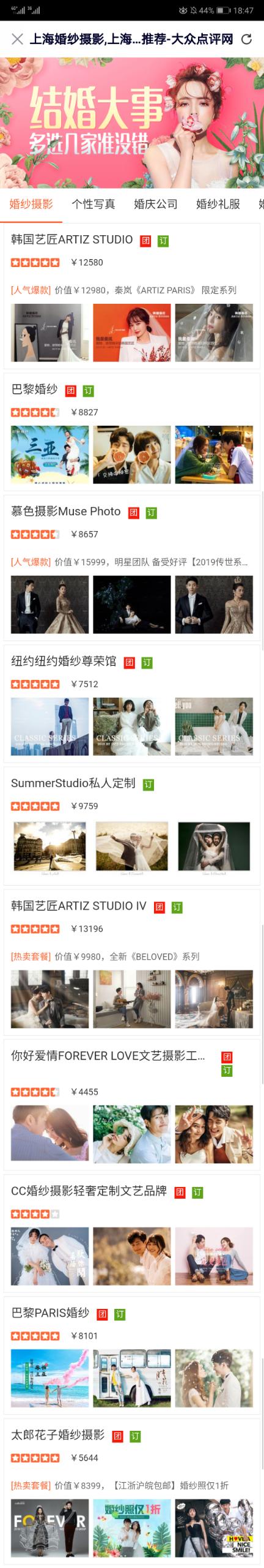 我好像知道广告主是谁了。 是大众点评。 而广告主的推广落地页的内容呈现比较多,会给大家推荐一些优质的婚纱摄影机构,并且还会讲述婚纱摄影服务的价格,具体服务内容等等,所以如果大家真的有需要婚纱摄影服务,就可以上大众点评去看看哟!