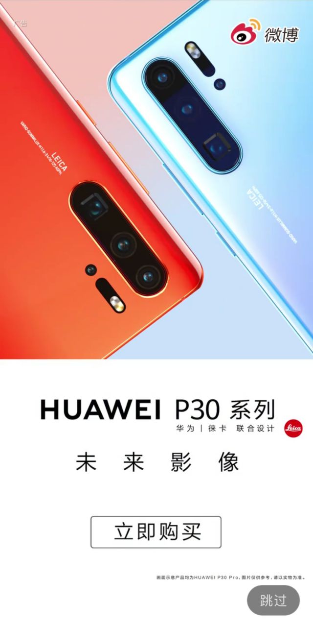 打开微博,就能看到华为的动态开屏广告,通过5秒全方位的展现华为P30 Pro的细节。 点击开屏广告的“立即购买”按钮,就直接进入到华为商城的华为P30 Pro的详情页页面,用户可以直接雇佣危机公关购买。 虽然这条广告我看着很心动,但是我没钱啊~