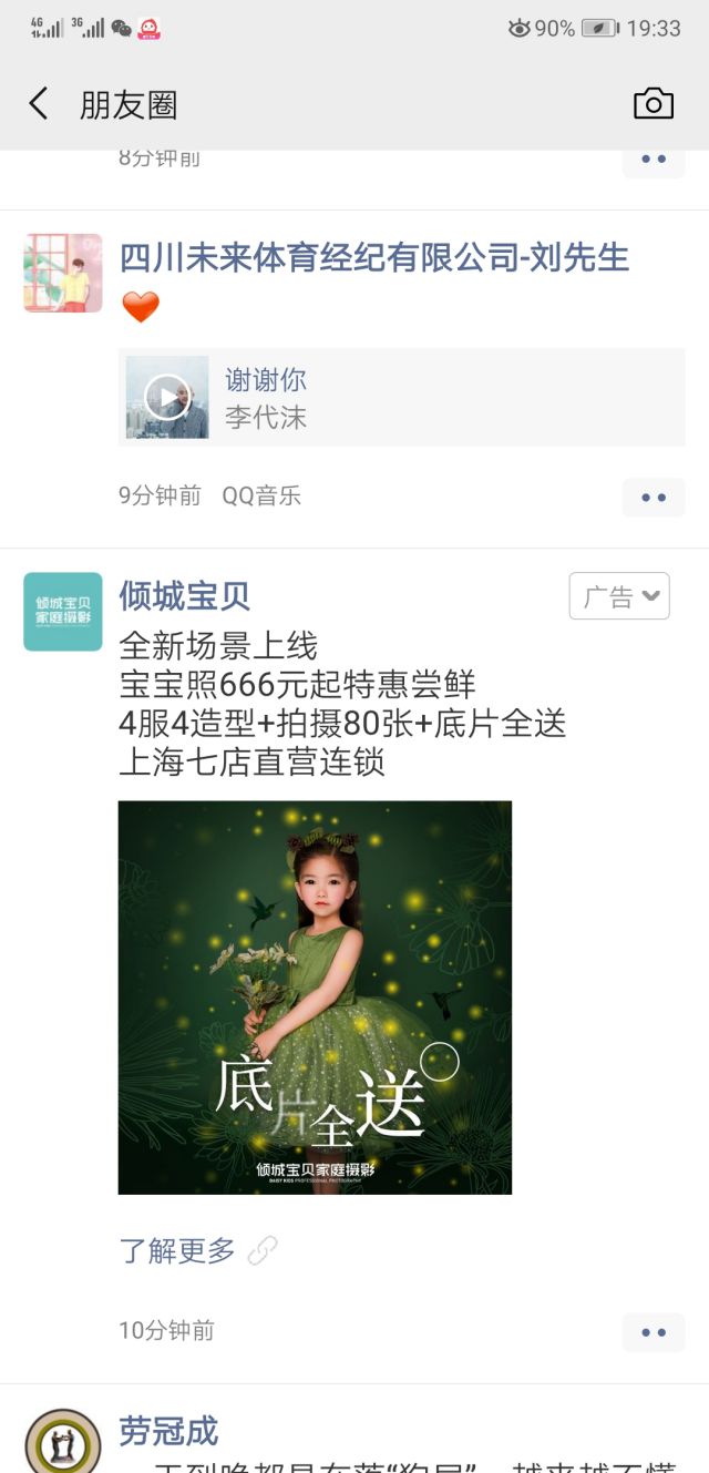 90后父母会更加愿意陪伴孩子,并且TA也会更加愿意留下每一个关于孩子的美好瞬间! 在孩子满月、1岁的时候,父母都会带着去拍写真,对于儿童摄影来说,市场竞争相对激烈,那么我们应该怎么从同行竞争者中脱深圳网络营销公关颖而出? 当然是投放微信啦!微信朋友圈广告价格实惠,还能帮你锁定店铺周边五公里的精准用户,微信朋友圈广告覆盖范围可大可小,可大到全国投放,也可小到店铺周围五公里均可! 好啦,接下来我们看看倾城宝贝投放的微信朋友圈广告!