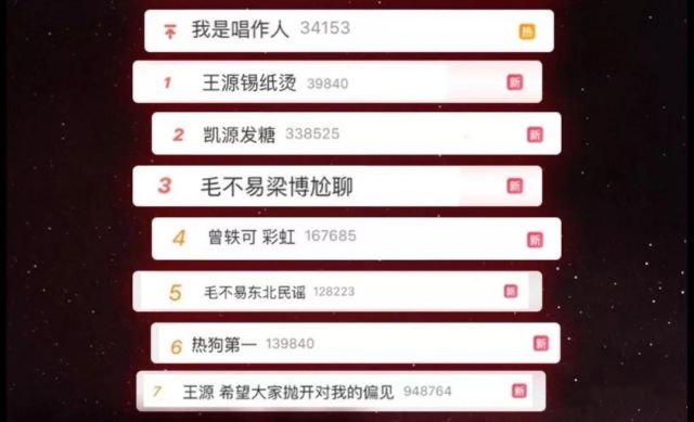 节目开播两集便高频抢位热搜榜:#王源锡纸烫#、#热狗第一#、#王源吆不到台#、#曾轶可好刚#、#高进选陈意涵#、#我是唱作人排名#等,主话题#我是唱作人#阅读量高达15.4亿,豆瓣评分高达8分,唱作人明星好友实名打call。黑人牙膏再次成为热门综艺的营销合伙人。