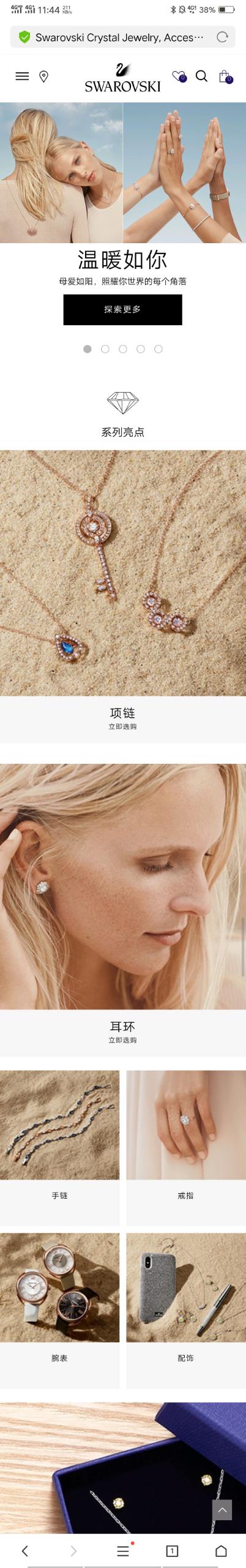 施华洛世奇投放的,打开爱奇艺第一眼就能看到本次为母亲节准备的新品的海报,展现新品,慢慢的都是爱,没有太多文字做点缀。 轻触屏幕之后,就会自动跳转到施华洛世奇的光放网站,可以了解到位母亲节打造的更多的新品,满屏的首饰,实在是诱人。