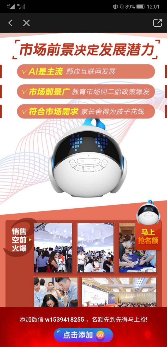 以上就是广告主专门针对此次营销活动设计的广告落地页! 从上至下,广告落地页的内容主要是: 1.加盟智伴机器人的三大优势:低门槛、0库存、更灵活; 2.讲述智伴机器人的功能,智伴儿童机通州网站开发器人可以帮助孩子一起学习,可以陪伴孩子聊天,还能够和孩子们一玩乐、唱歌、培养性格等等。 3.讲述智伴机器人的市场前景,这一部分内容是关于智伴机器人的未来市场预测,也是对智伴机器人的肯定,通过对智伴机器人的肯定,来让用户主动咨询; 4.讲述加盟智伴机器人的流程:留言资讯—签约—专人回访等等。 在广告落地页汇总,有多个按钮“添加微信......”,这些按钮也是不断的在吸引用点击广告按钮,并对广告内容进行点击等等,主动添加落地页中的微信,完成广黎明危机公关告主希望用户能够轻松完成的营销目标。 无论是什么行业在做爱奇艺广告时,我们的广告文案和广告落地页央视广告策划方案中都应当添加相应的号召性文字,而这些文字的主要作用就是引导用户关注我们的产品内容!