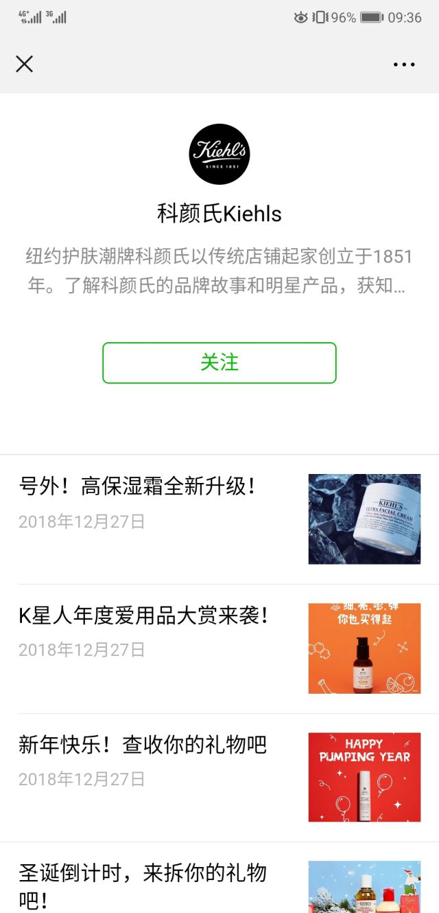 外层文案中有小哥哥的出现,所以广告内页也是有小哥哥出现的,这样才叫做首尾呼社团宣传片应嘛!小哥哥帅照下面还有“关注科颜氏公众号”,会直接进入公众号关注详情页!