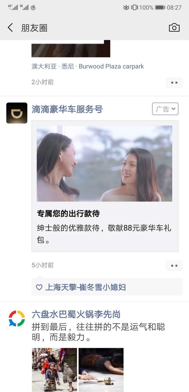 关键词:微信朋友圈广告,出行服务