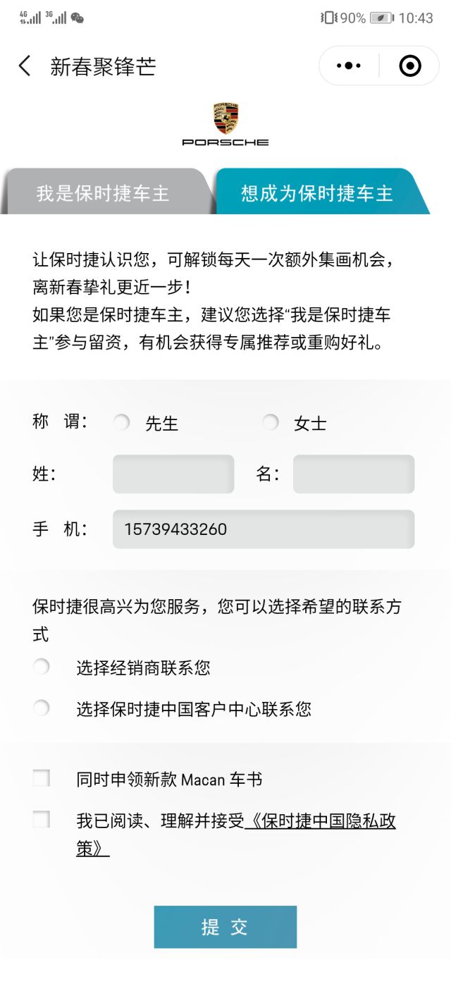 填写联系方式以后就可以线下体验保时捷新款Macan。