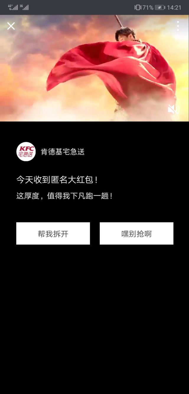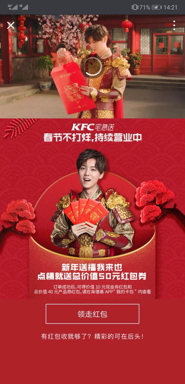 呐,鹿晗找你帮忙拆红包啦,点网络营销都有哪些推广渠道击领走红包按钮就有领取红包详情啦!广告还是要给大家留些内容,大家自行体验! 肯德基宅急送投放微信朋友圈广告有什么优势? 广告营销推广1.运用鹿晗的明星效益,引发更多目标受众的关注; 2.微信朋友圈广告曝光更多,并且能够做到精准定位,可以让更多的目标用户看到广告; 3.微信成本低,广告转化效果好!