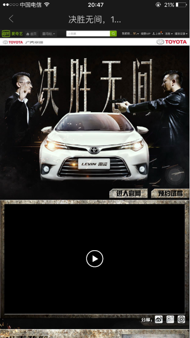 广告落地页就是关于雷凌详细介绍,是影片中关于雷凌的视频截图,也是雷凌汽车的自我介绍,通过广告落地页也能进入企业官网/预约试驾等等。 广告案例就是这样! 如果我们从事于汽车行业,并且在某热门影视剧中,也有出现汽车的片段,并且汽车也露脸,流露品牌logo,我们就可以做借势营销。 借势营销最重要的是找到影视剧所针对的一类人,并把广告投放给他们! 现在你知道借势营销怎么玩了吗?要玩借势营销也可以赶紧和我们联系~