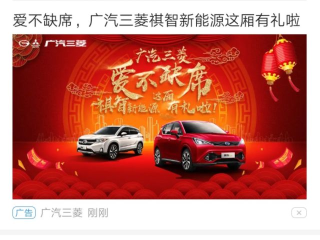 每天刷的目的有二: 1.获取新的实时信息,扩充自己的知识量; 2.刷经典广告案例,充实自己的广告案例库。 像小编这样努力幸运的人,是肯定不会被辜负的,所以小编今天就刷到了一条不一样的广告! 广告主是广汽三菱: