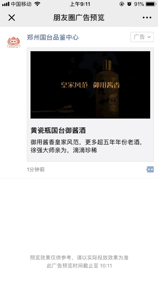 ● 外层高清视频,便于全方位展示国台酒的皇家风范 ● 广告投放标签设置明确,精准圈定人群,品效合一。 考虑到国台酒的用户属性,广告在投放标签上选择了35-60岁,有酒水、美食、金融、商务服务、养生保健、政治爱好者等兴趣标签的男性用户群体,在达到较好品手机品牌公关危机宣效果的同时也利于用户转化。