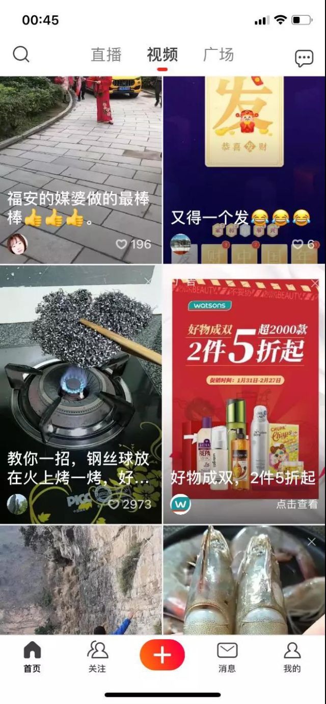 春节期间,在8集短剧的左下角,都能看到配备了视频转化组件,“2件5折”的诱人标题,吸引27.8万用户点击,用户能够一键获取到的满减优惠券,在线下屈臣氏门店就能直接使用。通过转化组件的添加,实现了从内容到销售的转化,帮助屈臣氏完成了线上线下的联动。 3、多维资源导流,实现品牌立体化曝光 为了扩大短剧的传播效果,火山小视频还动用平台高效的流量覆盖机制,借用多维资源全方位导流,并搭配王牌硬广,帮助品牌扩大曝光。 例如,火山小视频搞笑频道的重点资源位进行展示,视频频道的重点资源位展示品牌促销信息,最终帮助品牌收获2308万+曝光,132.6万+点击,点击率达5.74%,实际点击率高达预期点击率的11倍,极大的提高品牌的曝光度。