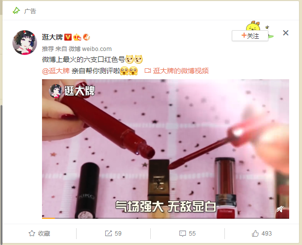 广告分析: 广告主是找到最近最为火热的口红色号来做真人测评,并把测评内容拍摄成视频,并进行广告投放。 广告推广内容是通过真人在测评口红的内容来讲述口红优势,并告诉大家口红特点,适合什么肤色人群等等,由于广告主是做的微博账号的推广,所以在视频内容中,也会多次提到自己的微博账号定位,在这里广告主的定位,安徽电视广告多少钱就营销策划的意义是能够帮助大家找到更适合自己的化妆品、彩妆工具等等。 总结: 如果要在微博上推广自己的微博账号,要先找准自己的定位,并且找到目标受众,根据用户的兴趣爱好,制作广告创意,也更能够让更多的用户持续关注官微。另外,我们的广告博文在收到用户评论时,广告主还需要及时跟用户产生互动,也能够拉进广告主和用户之间的距离哟~