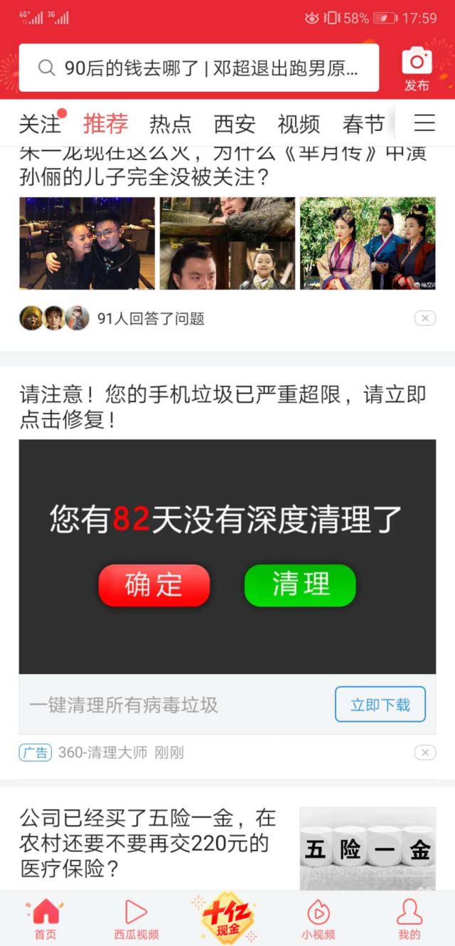 品牌对于自己的评价,全部展现在广告文案图片中! 360清理大师的服务自述就是能够帮助广大用户提供清理手机垃圾,还能够帮大家修复漏洞等等! 广告图片的话,也是提醒大家是否很久没有清理手机垃圾啦!广告品行业报告并且还有两个按钮,“确定”和“修复”,无论我们是选择哪一个,都能够帮助用户清理垃圾,修复等等。 看完广告外层文案以后,我们点击广告图片和按钮一起来看看吧!
