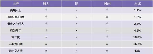 数据解读:健身市场用户有积极的消费升级需求,但总是受各种客观因素制约。一个有毅力,有钱又有时间的健身爱好者,就是健身人群金字塔顶端的用户,反之一个既没有钱,也没时间,还没毅力的用户,基本也不在我们锁定范围了。然而大部分用户或潜在用户,更可能是三者中存在某些短板的类型。几种人群的数量大致分布如图,究竟是着眼于优质用户的精耕细作,还是在价值量低但广泛的用户上着手,会演绎出两种截然不同的营销思路。