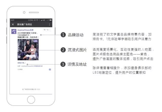 健身行业规模预测(亿元) 中国必定是亚洲乃至世界健身俱乐部市场未来几年内会取得高速成长的市场,而Anytime Fitness这家国际连锁加盟式健身俱乐部也十分看重中国市场。经过营销顾问的分析,“Anytime Fitness北京“想要更好地增加曝光度宣传品牌文化,提升品牌在店面周边的知名度,并收集有效客资,他们做出了最合适的选择,在朋友圈投放推广广告,资深优化师是怎样助力“Anytime Fitness北京”达到营销效果的? 一,我们对健身目标人群做了分析