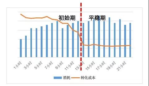 当CPC计划投放了5天,转化成本不稳定,消耗提升,成本波动幅度较大;oCPC计划投放了10天后,转化成本前期偏高,但后期逐渐趋于稳定,消耗提升,成本波动幅度较小。因此,使用oCPC计划能够实现平均成本低于CPC计划60%。