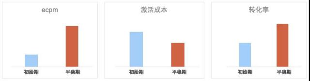 当需要积累相应的转化数和转化效果趋于平稳之后,oCPC计划的激活成本明显下降,转化率显著提升。其中,ecpm上涨58%,平均激活成本下降45.57%,转化率由18%上涨至32.34%。因此,选择oCPC智能优化投放转化率高,能够帮助广告主在高量级获取用户的同时优化成本。