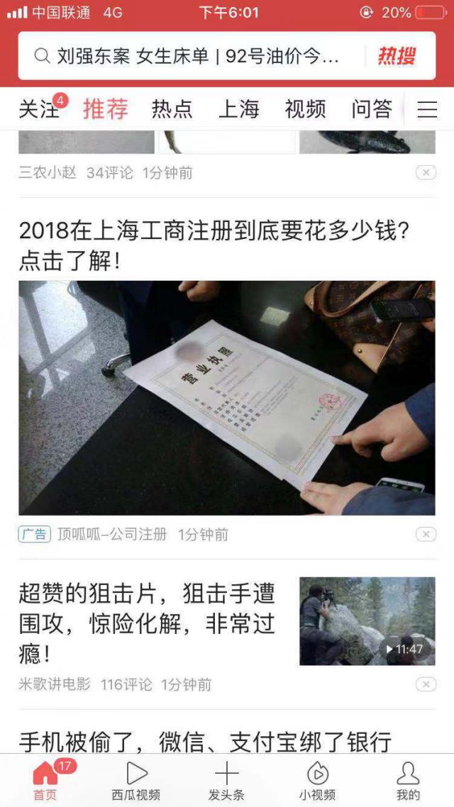 顶呱呱的是通过公司的服务项目进行宣传,通过提问:2018在上海工商注册花多少钱? 来引出顶呱呱的服务项目,让有需要的广告主对广告有所行动。广告主可以通过广告实现自己的推广目标,而用户也能够通过广告来解答自己的疑问。 像企业咨询类投放今日头条广告,广告落地页可以是两种: 1.企业官网,用户可通过官网进行咨询,也可通过官网获得更多的服务介绍等等; 2.广告主的落地页,广告主可以通过落地页的表单来收集客资。