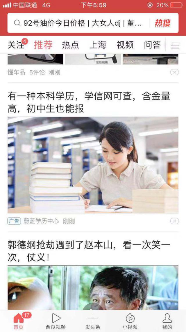 广告主是蔚蓝学历教育中心,选择的广告资源是推荐页信息流广告,广告创意和文案就是通过广告主能够提供的教育服务来作为切入点。 蔚蓝学历教育中心就是为广大白领提供学历教育、人力资源管理师培训、心理咨询师培训、物业管小公关公司理、远程教育等多种职业培训,除了这些以外还能够提供自考培训等内容。