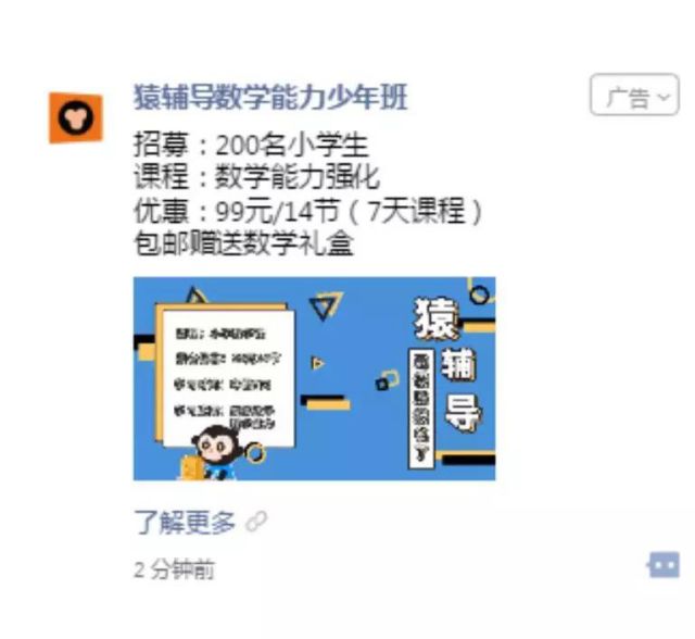 此次《猿辅导》选择朋友圈进行推广,不仅提升品牌价值,还为后期用户量积累奠定基础。可见好的推广平台是成就品牌的直接助推力。