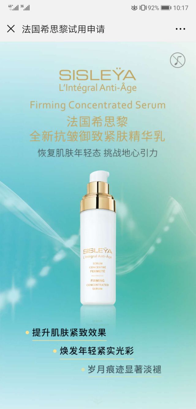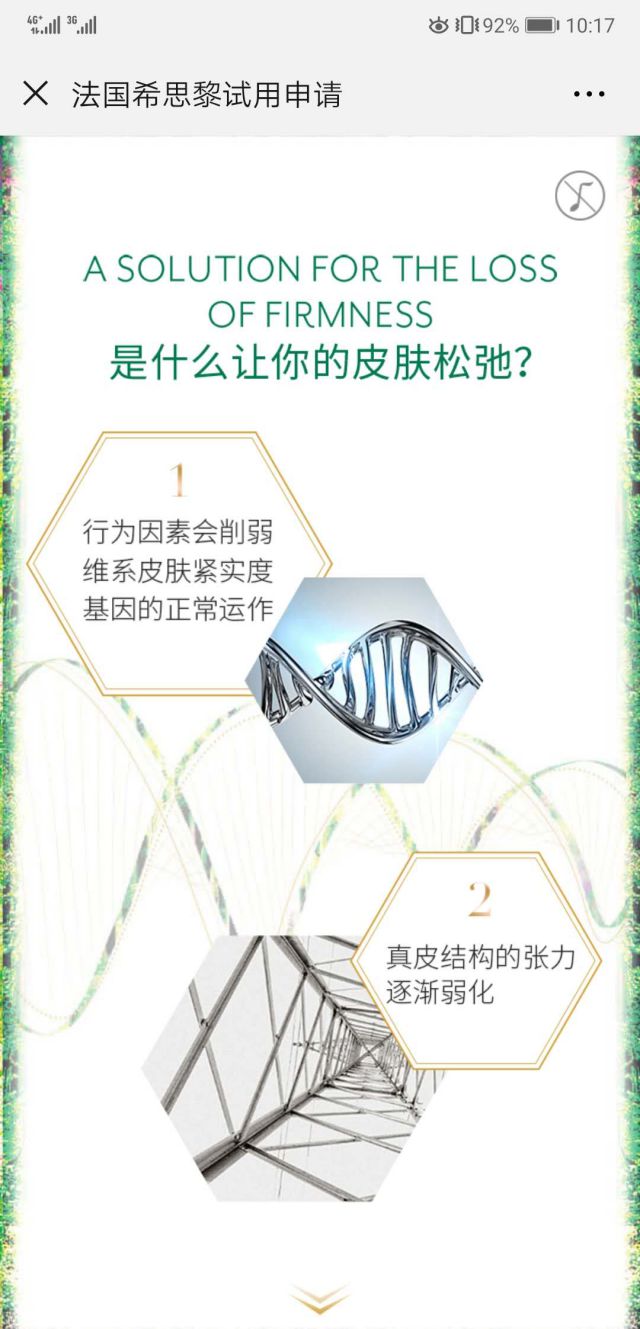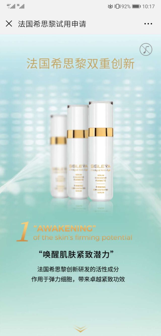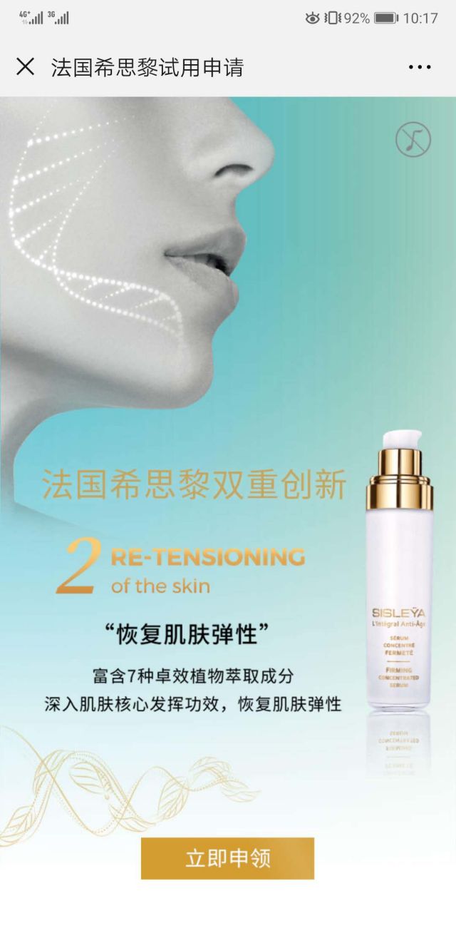 广告外层文案就是跟大家讲述法国希思黎优新品上市,然后通过微信可以申领试用装! 看看广告内页?