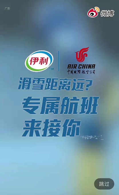 中国国际航空公司作为冬奥会合作伙伴,此次投放微博开屏广告,以冬奥会项目“滑雪”为广告创意,引出广告产品。广告语“滑雪距离远,专属航班来接你”,突出产品的同时又能拉近与用户之间的距离。广告采用动图的模式,在用户打开APP的5秒,吸引用户眼球。 微博开屏广告没有单独设置互动模块,对于品牌推广类行业,可以减少用户干扰。开屏广告的曝光效果是非常强的应对公关危机首要原则,当用户用移动设备打开APP时,广告呈现,占据“黄金5秒”,品牌记忆度高。 开屏广告的样式一般是静态图片或者动态图,其中动态图的广告样式视觉冲击力强,能够有效抓住用户眼球,公关总监吸引注意力。