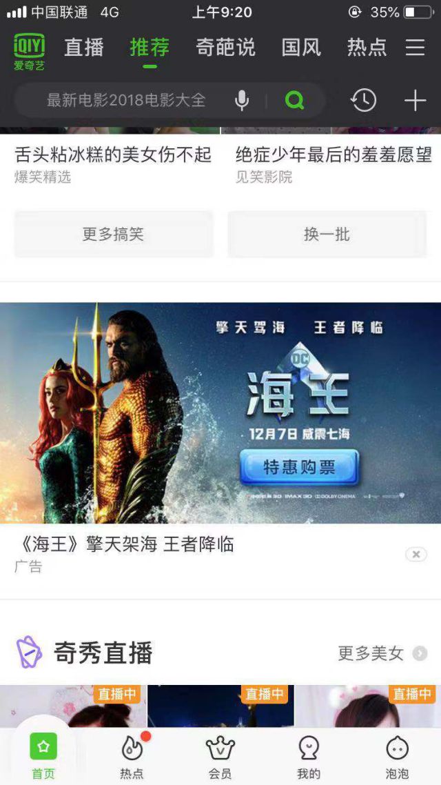 广告案例,是这样的。 《海王》是12月7日即将上映的大互联网营销培训内容电影,感兴趣的朋友们可以去看看! 《海王》投放的,广告文案都和传统的爱奇艺广告一样,都是爱奇艺推荐页信息流大图广告,唯一不一样的是落地页。 用户跳转至落地页后,落地页是可以直接连接都影院的,如果大家想要观看电影,通过投放爱奇艺广告,也能够直接购票。 《海王》的影视剧就是通过这样的方式来投放爱奇艺广告的!如果广告主也有影视剧宣传需求,或者是对爱奇艺广告有兴趣,可以跟我们联系!