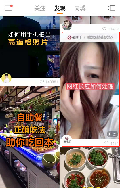 痘博士此次投放的快手广告就以“网红”为广告创意突破点,吸引用户眼球。广告封面标题采用“网红长痘如何处理”,吸引用户点击广告。视频展示了一个饱受痘痘烦恼的美女到痘博士祛痘的故事,简单自然地引出广告主,用户接受度高。视频下方广告主在留言区域介绍了本月的活动体验套餐,让心动的用户可以进行参考。如果想要预约活动体验套餐,可以点击视频下方的预约按钮或者评论区的链接在线预约,简单方便。