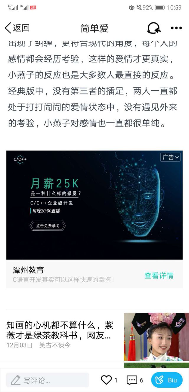 广告就是一个图片,图上的文案就是直接询问月薪25K是什么感觉!而后就引出C/C+企业级开发培训课程,课程的开始时间是每天晚上20:00马鞍山,广告有一个潜台词就是学习了C/C+以后,月薪就能高达25K,对于普通人来说,25K确实是一个很难企及的高度。 潭州教育就是一个职业培训学员,而他在这里推广就是选择一个单独的职业来进行推广,这也是职业教育培训学员机构要投放广告时,可以借鉴的地方。 潭州教育投放的广告最不一样的就是他的广告落地页了,常见的广告落地页是品牌介绍+表单,但是潭州教育的却是这样…